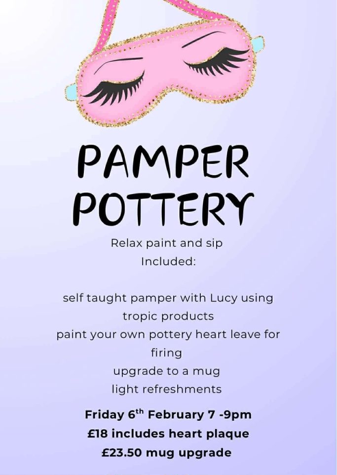 6th Feb Pamper and pottery 7-9pm